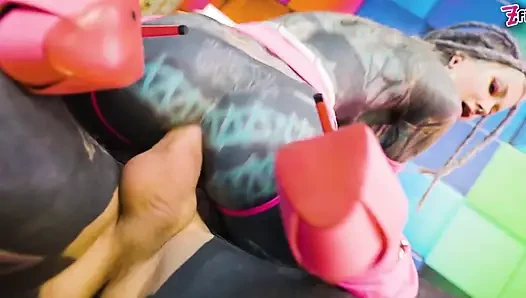 Ebony Sauna Seduction Wild Blowjob and Pussy Pound